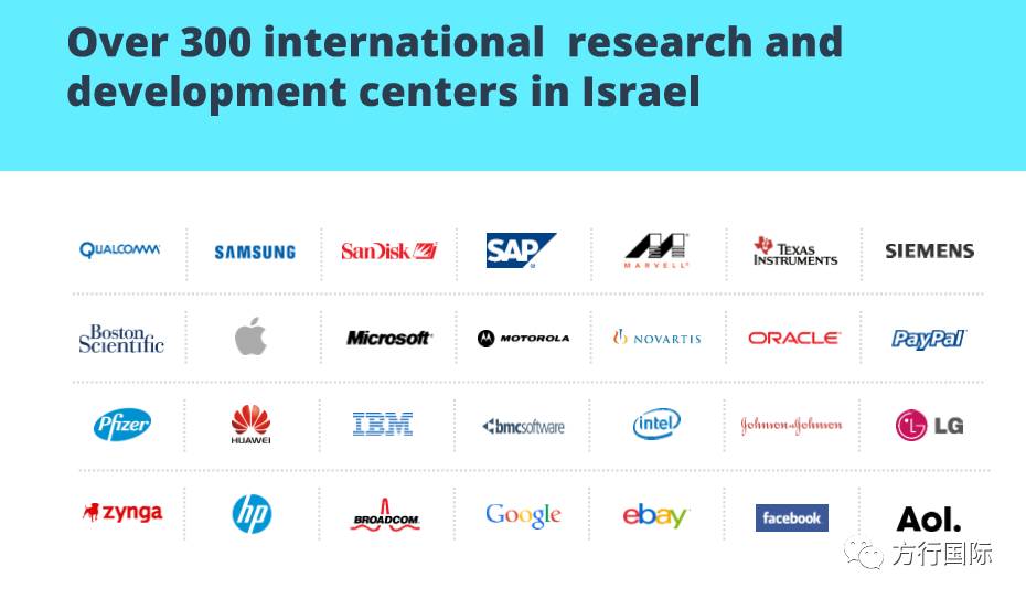 极佳的科研、创新和人力资源环境吸引了全世界超过300家跨国公司在以色列建立研发中心,包括中国的华为和海尔。