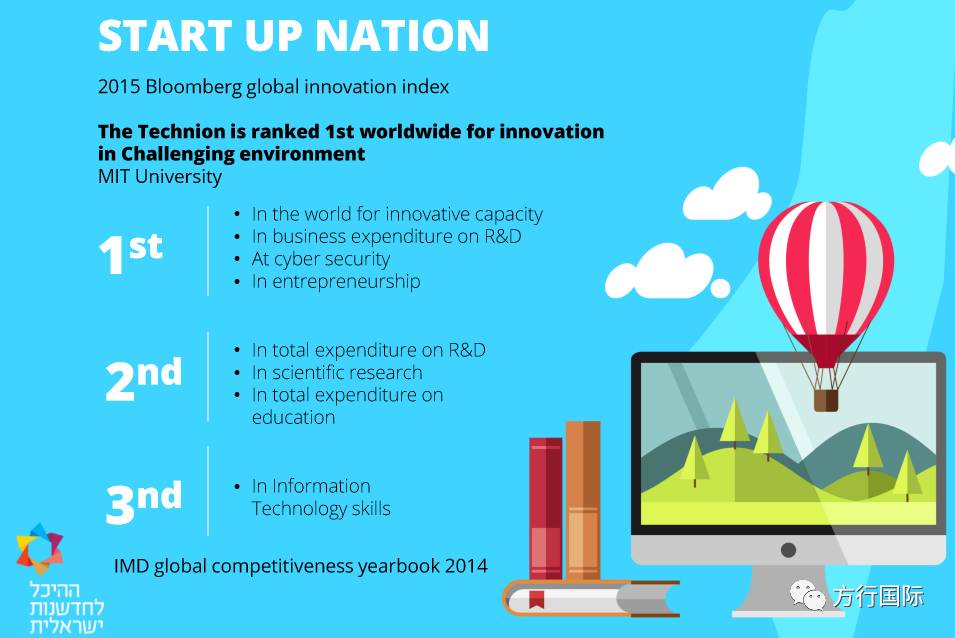 在创新能力、研发投入、企业家精神、人均诺奖获得者(不包括以色列之外的犹太人)等领域排名世界第一,而以色列的海法理工还被评为世界最具创新力的大学(2014)。