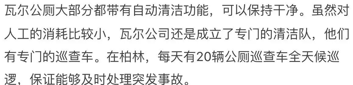 瓦尔公司不仅要负责日常维护工作,还要新建大量公厕,在常人眼里公厕生意,想赚钱可比登天还难,瓦尔公司不是公益组织,赚钱肯定排要在第一位。
