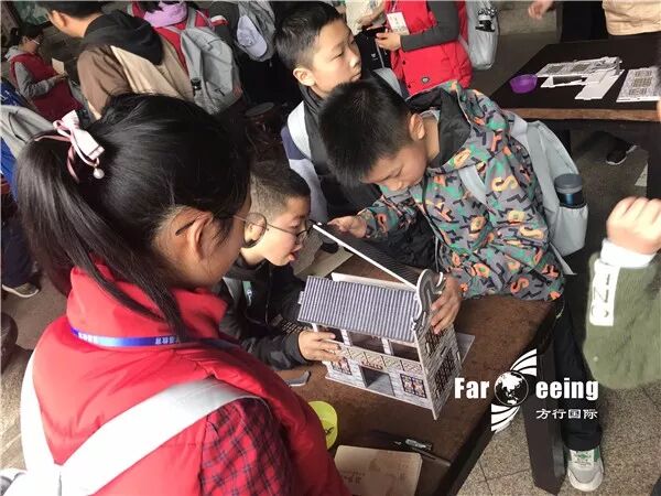同学们动手搭民居,制作充满文化韵味的书签。