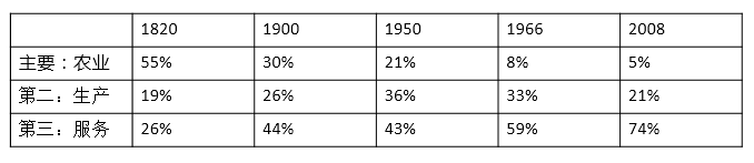 丹麦农业类、生产类、服务类占国家经济比例188年变化