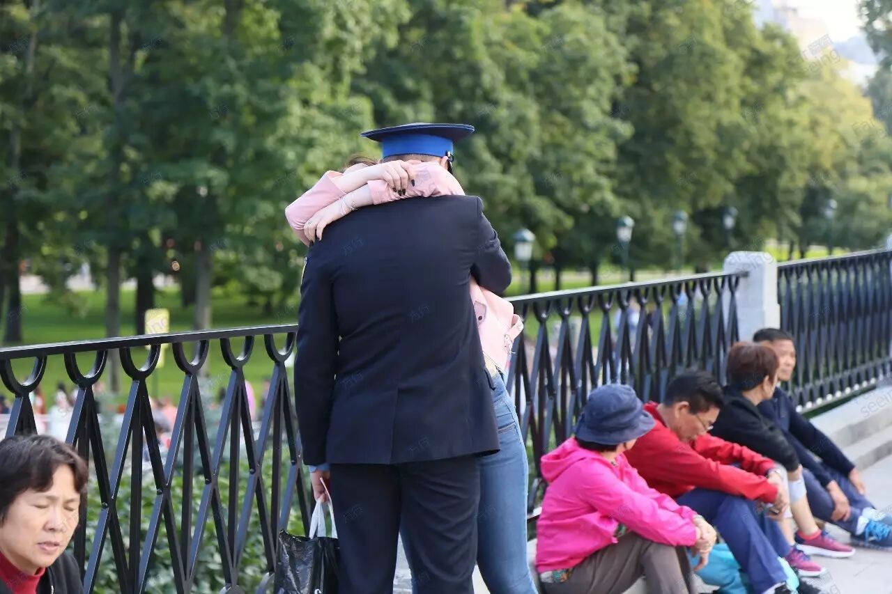 ▲和女朋友依依不舍的军人