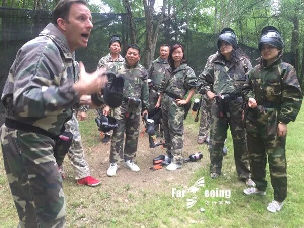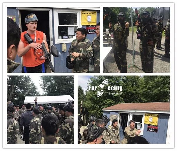 我们来到营地的山林里进行一场精彩的真人实战彩弹射击比赛,安德森教授还有其他教练指引我们思考战略、实施战略,部署我们怎么完成任务,哪位往前冲,哪位掩护其他人。