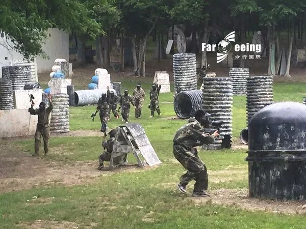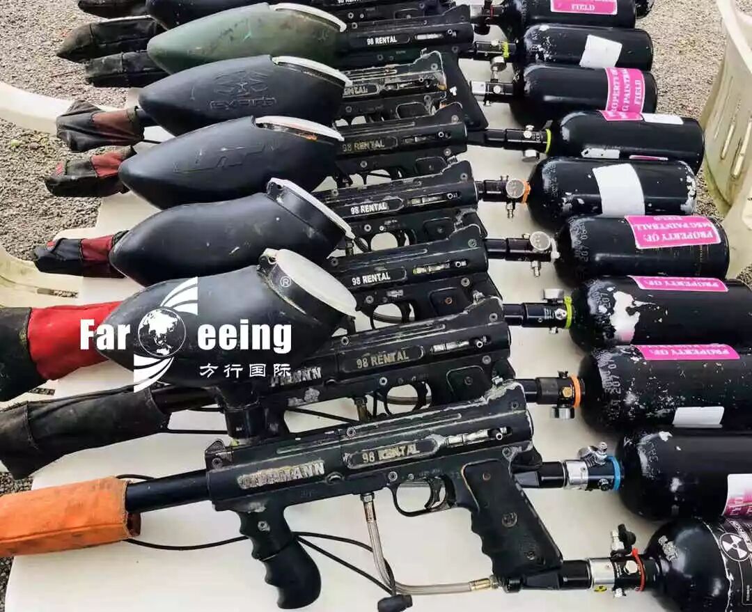 “开战”前会有详细的讲解和体能热身训练,避免受伤,我们每人有500发子弹,一支彩弹枪。