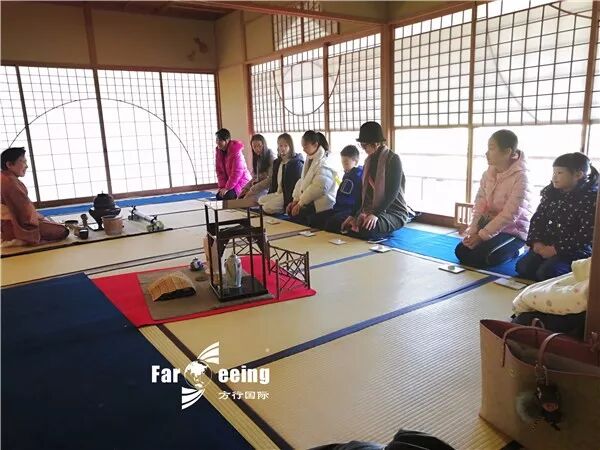 我们吃完早饭后,坐了大概2个半小时的车程到了学习茶道的地方,学习茶道的地方是一个小镇,很安静很唯美,路面一尘不染,像我们李老师所说到了一些国家反而不喜欢去大城市还喜欢去一下小乡镇感受大自然,导游小姐姐说到学习茶道的地方有4个点和敬清寂,到里面要先脱鞋,然后来到榻榻米上跪坐起来。