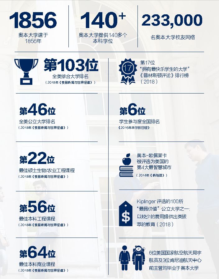 奥本大学(Auburn University)于1856年建校,是传统美国百强大学之一,它在农业、林业、建筑学、药学和兽医学、文学、数学、商业、工程等学院都有很强的研究项目。奥本大学拥有自己的民用机场,为学校员工的研究访问提供服务,同时也是学习航空管理学生的实践基地。其研究生有由于其校区靠近NASA,其为美国航空和航天界培养了诸多人才,其航空、航天专业在美国名列前茅。奥本大学的体育成绩非常优秀,其Tigaers体育队更是多次称霸NCAA各项赛场。其体育场可以容纳9万人,规模超过鸟巢。奥本大学也建有孔子学院。美国苹果CEO库克的母校!