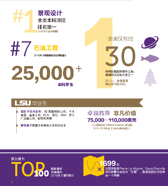 路易斯安那州立大学(LSU)地处美国南部路易斯安那州首府巴吞鲁日市,建于1806年,是该州的旗舰大学,也是路易斯安那人最自豪和钟爱的大学,是全美最美的20所大学之一。2015年该大学在全美综合类大学位列第129名,是美国南方地区的名校,学校设有高达235个以上的学科和专业。学校景观设计专业全美本科排名第一!