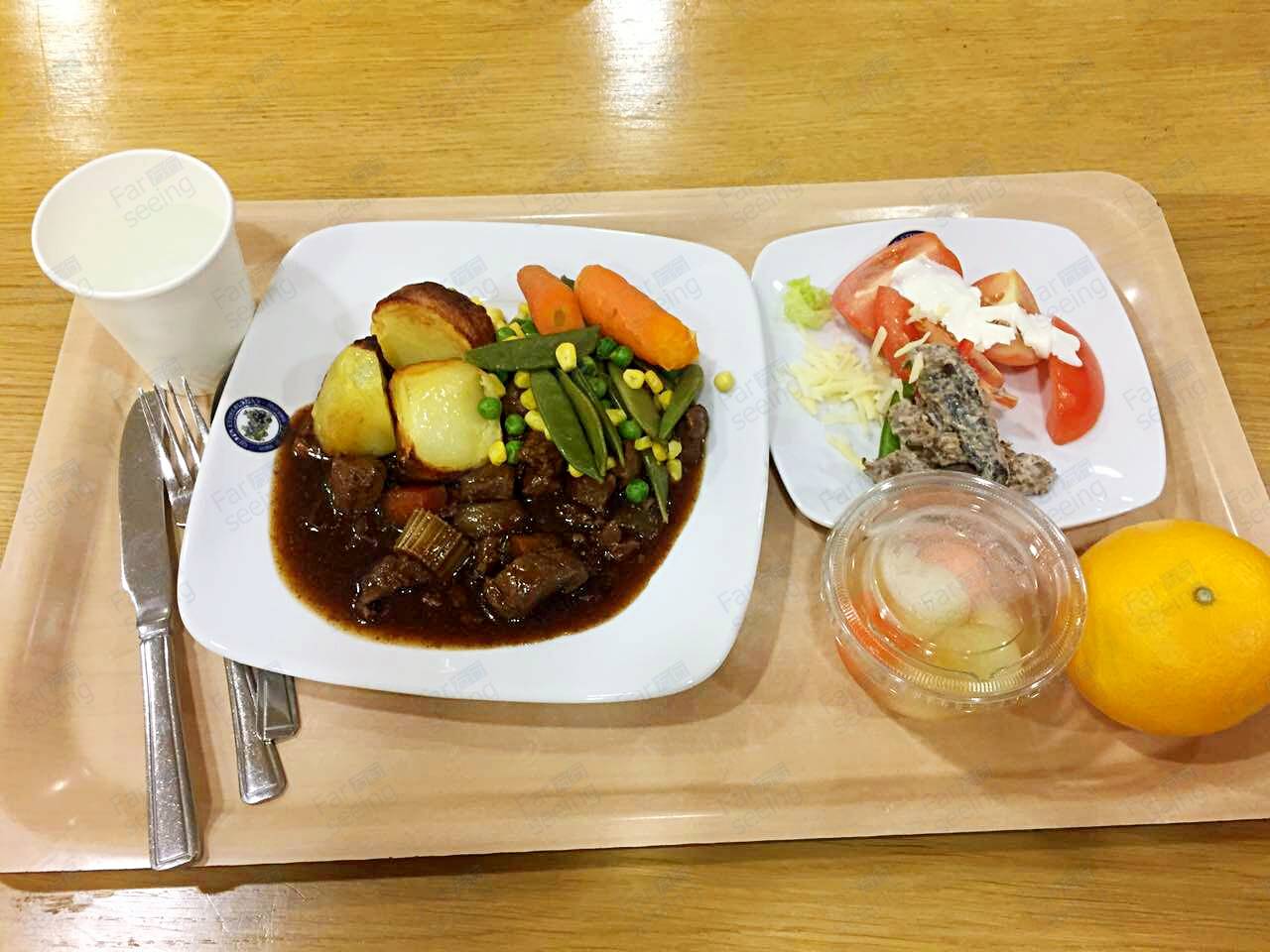 干净舒适的饭堂。学校有专业的厨师在一流的厨房里工作,精选本国和国外的新鲜的原材料,健康营养丰盛,刚到英国第一天的我们,厨师还专门帮我们准备了薯仔红萝卜汤。