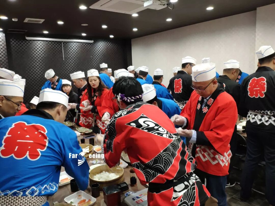 学习完课程之后,团员们摇身一变成为了寿司达人。大家一边体验制作寿司的乐趣,一边观察着梅守的员工们充满了激情的工作模式,更加深刻地领悟到了阿米巴经营模式激情的魅力!