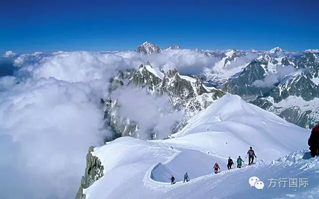 勃朗峰——阿尔卑斯山脉最高峰,也是欧洲第一高峰,海拔4810米。法语意为"银白色山峰”。