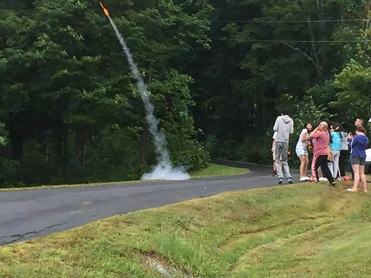 几天之后,小组队员去到中心发射火箭,对,是真的发射。火箭发射时,还在喷着烟,这时孩子们心里绽放的火焰就更加盛大了。这简单的飞跃带来的成就感和自豪感,即使曾经解决过的无数数学难题也是无能相比的。