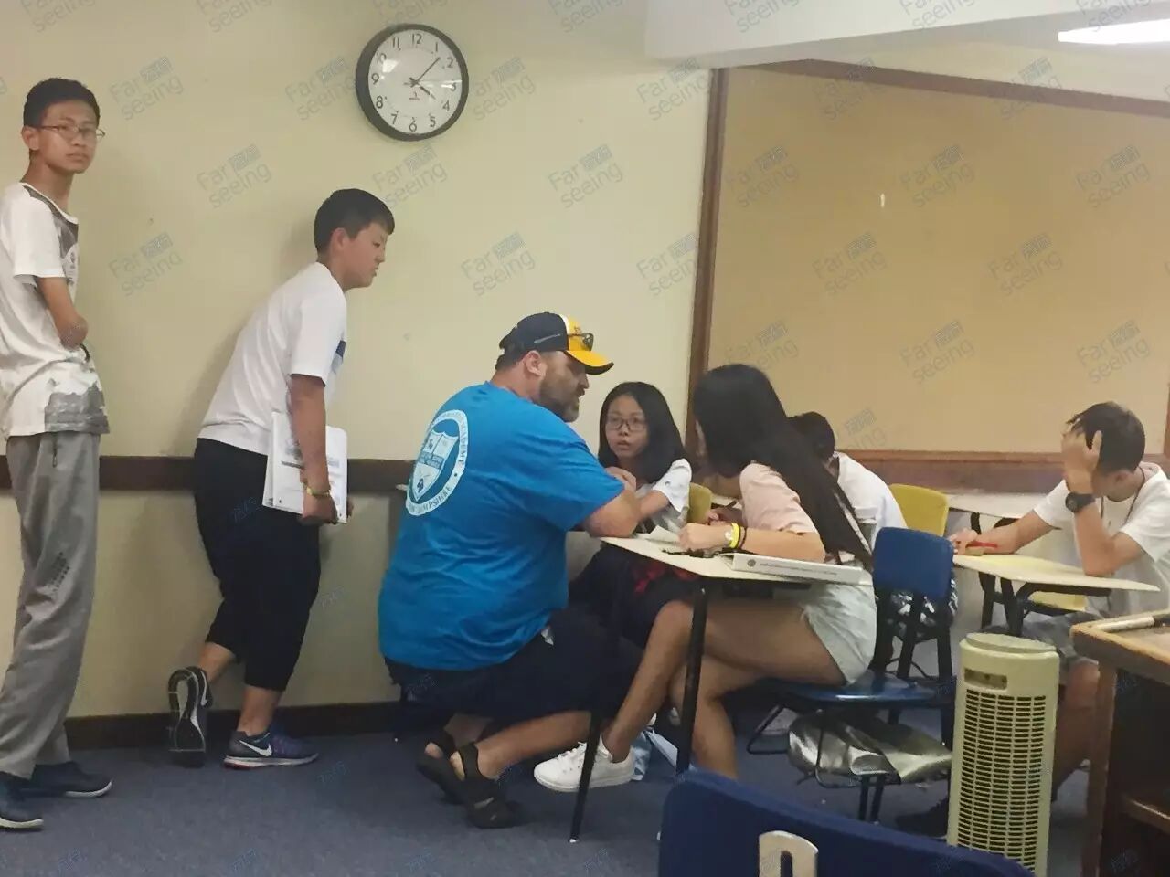 老师更像是的主持人,而不是主角,他鼓励每一个学生发言,师生之间的“区隔”被取消了。其实“让孩子大胆开口说英文”是我们这次夏令营的目标,最终让孩子爱上学习英语。