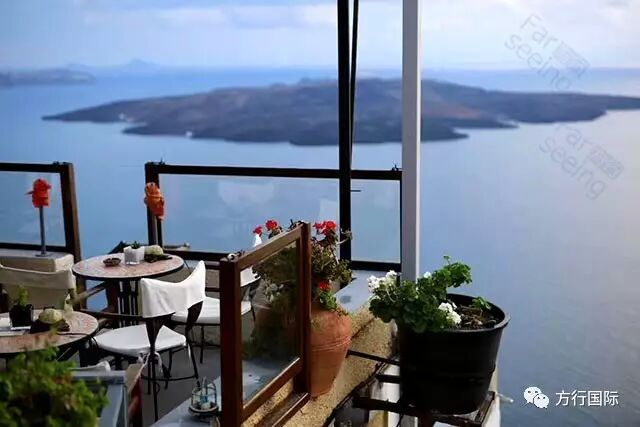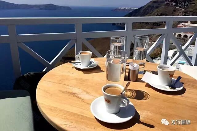 悬崖上露天吧喝杯咖啡,一边欣赏湛蓝的爱琴海,徜徉在微风和温暖的午后阳光下,无疑是一种放飞心情的好途径!