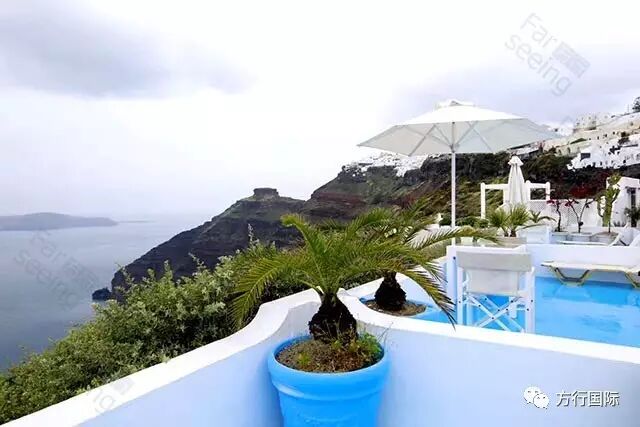 圣托里尼Kafieris Blue Studios蓝色公寓--悬崖上的酒店!依山傍海,位置绝佳!