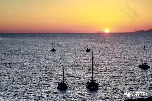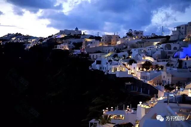 断崖与爱琴海,落日余晖与小镇温柔的灯光交相辉映,构成一幅幅浪漫美妙的图画!
