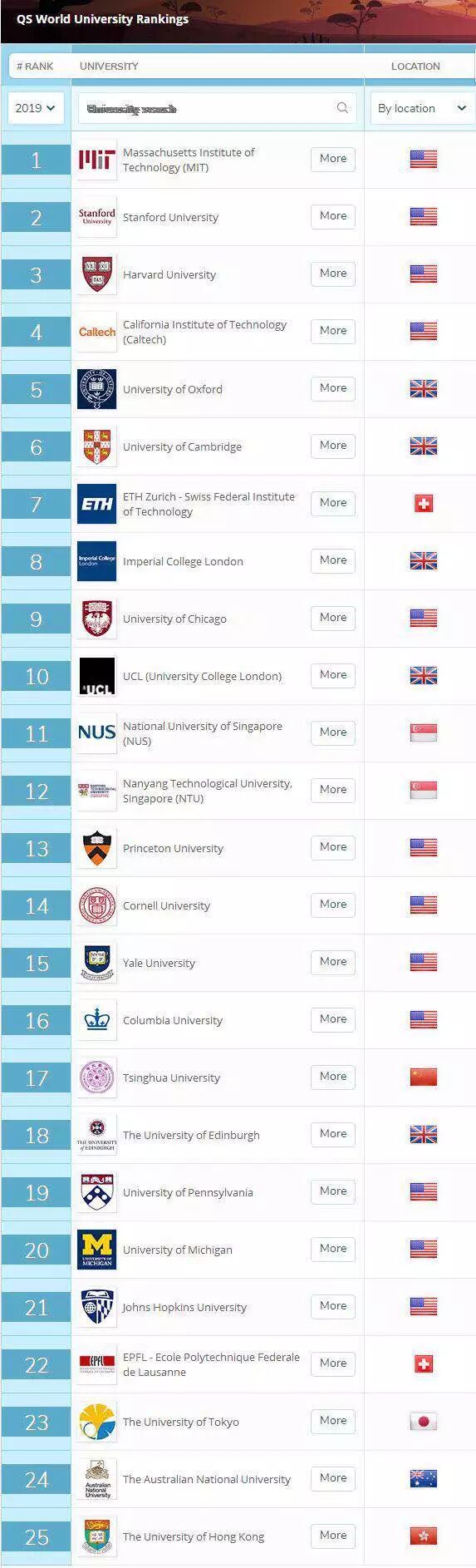 日前,全球高等教育研究机构QS(Quacquarelli Symonds)发布了2019版世界大学排名,包含来自世界85个不同国家和地区的1000多所高校。