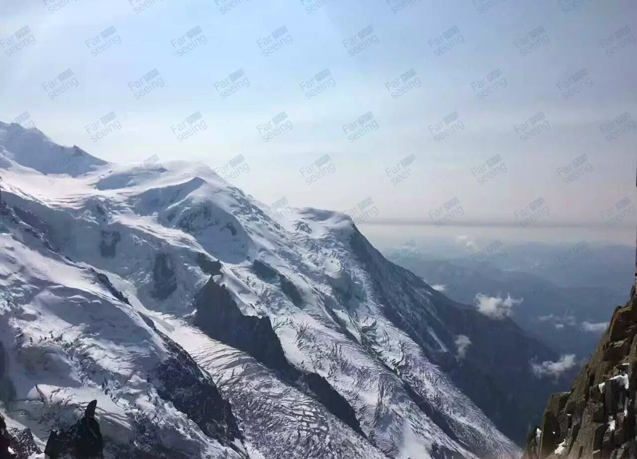 勃朗峰的游客很多,我们等候了2个小时,终于登上了阿尔卑斯最高峰勃朗峰(3824米),山水的风很大,很冷,但一切如此壮阔纯净,一碧如洗。