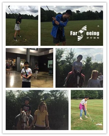 同时,我们在活动中交流和体会英国文化,这种体验,也是刻板的课堂不可以取代的:篝火晚会,打高尔夫,骑马,甚至给马场的马亲密接触,帮忙清理马场,与当地小朋友一起运动,一起交流……