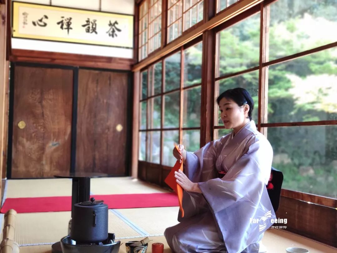 茶道不仅要求有一个幽雅的品茶环境,而且要遵循一整套煮茶、泡茶、品茶的程序。品茶流程虽然繁琐,却极具仪式感。在某种程度上来说,日本茶道的精神,是融宗教、哲学、伦理、美学为一体的文化艺术。