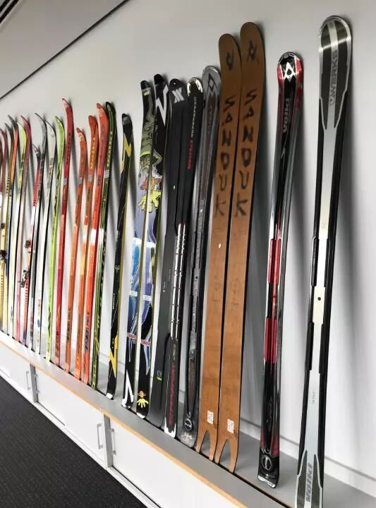 滑雪板主要材料是木材,因为比较坚固,不同木材挤压一起成型(根据滑雪板类型选用木材),女士更轻,男士更重,同时VOLKL更倾向选用一些可持续使用、生长速度更快的木材。