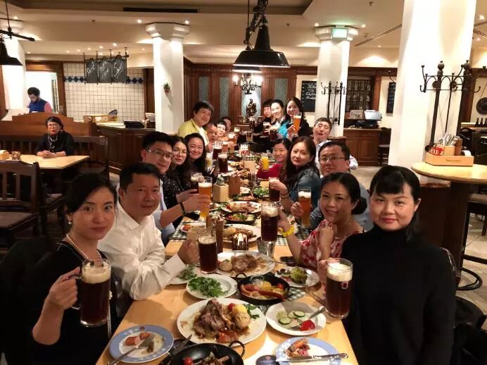 也许受到大家一致追捧的是 德国啤酒,那一杯杯冒着白色泡沫色泽金黄的啤酒,在余晖映照下更多了一分美感。呷上一口,你会被那种香醇浓郁,丝滑入喉的感觉陶醉。异国的美食和风情,让斯图加特的晚餐多了许多欢笑和浪漫。
